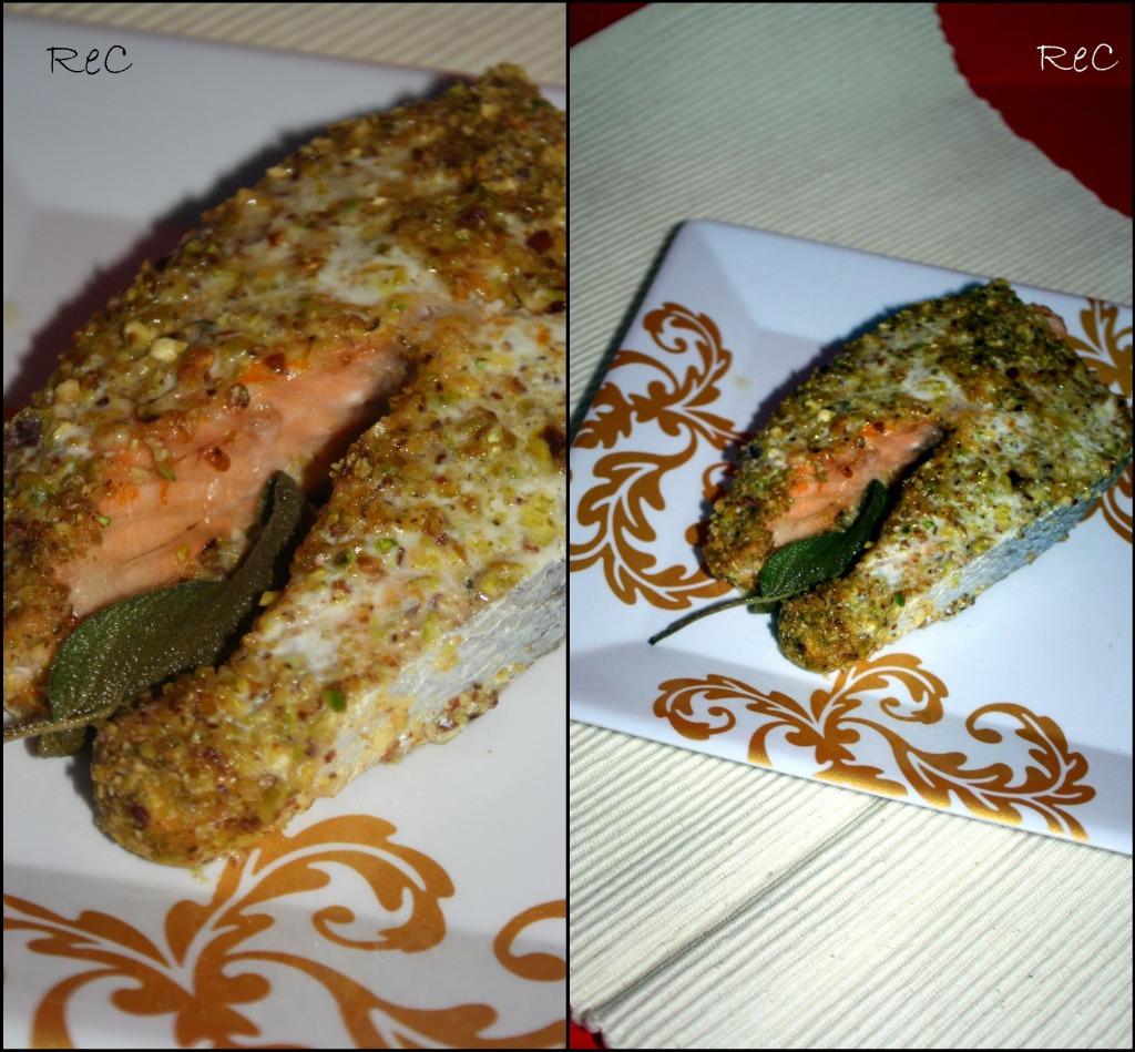 Mi piacciono tanto le panature insolite (giorni fa, guardando un programma di cucina, mi sono innamorata di una panatura ai grissini e lavanda, per dirtene una) e i pistacchi rappresentano un’idea davvero interessante, sopr!attutto in abbinamento con salmone e arance