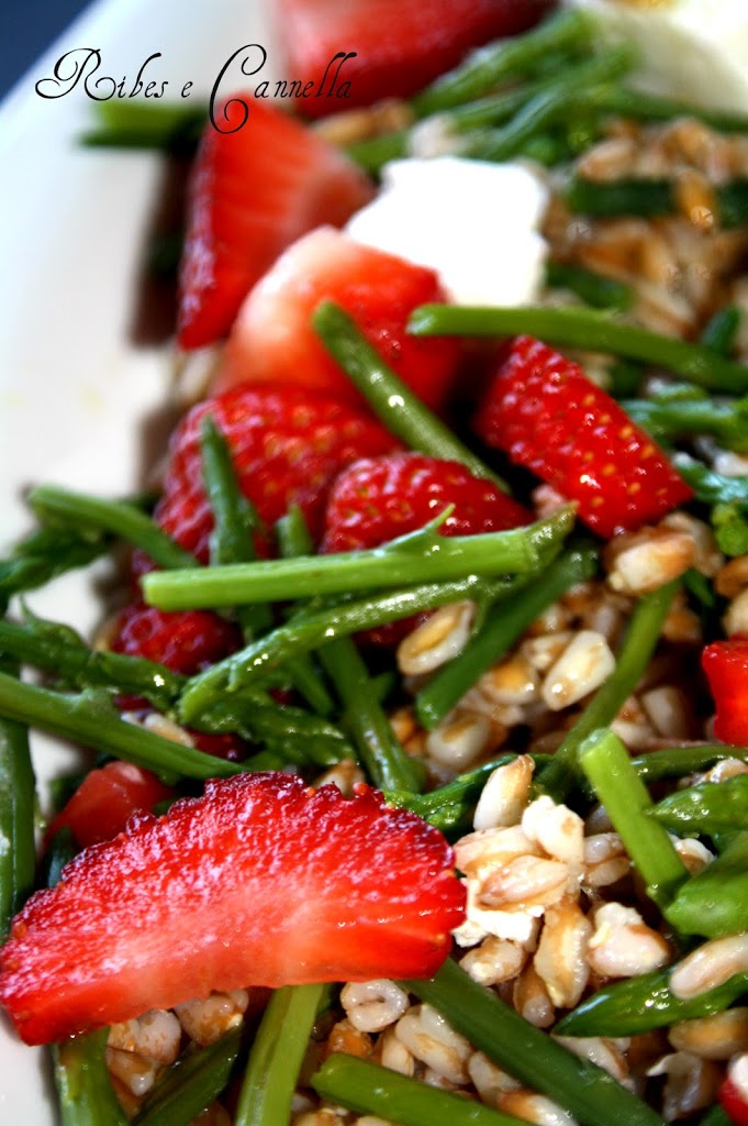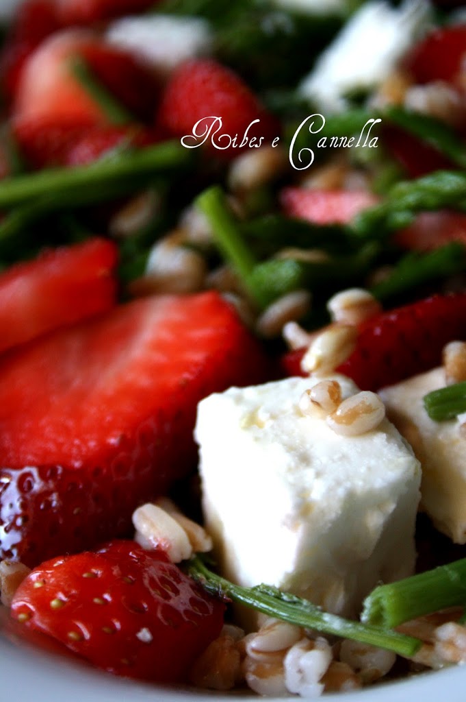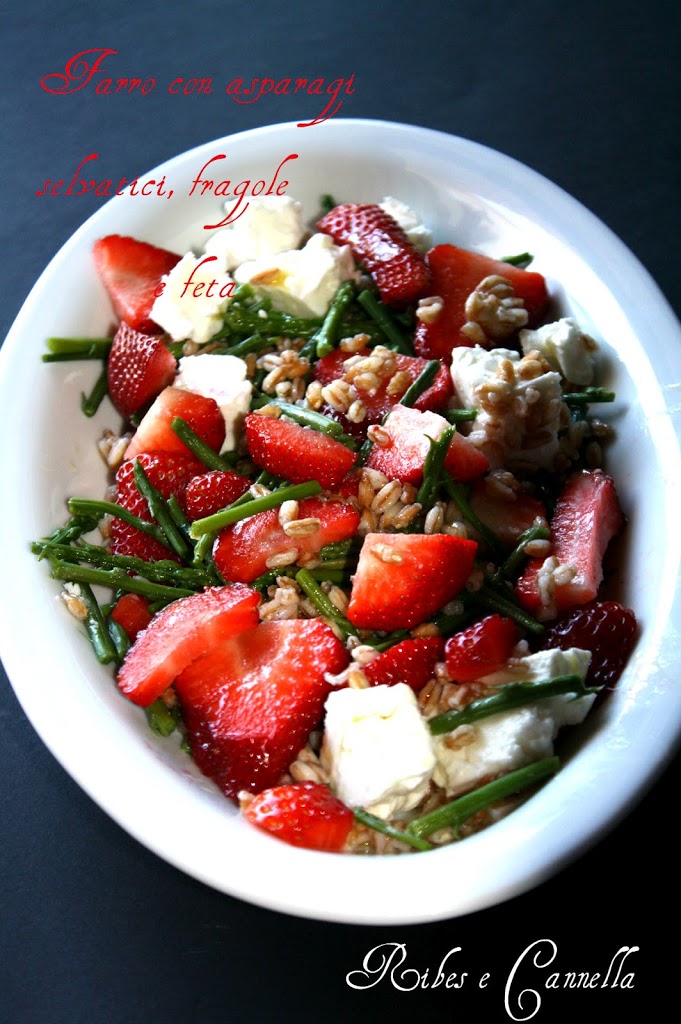 Far cuocere il farro in acqua bollente salata, scolarlo e lasciarlo raffreddare. Mescolare il farro ormai freddo con le fragole tagliate a pezzetti, gli asparagi e la feta, condire con un filo d’olio e se necessario salare ( io ho salato solo l’acqua del farro, con la feta è abbastanza saporita!) e servire fredda!