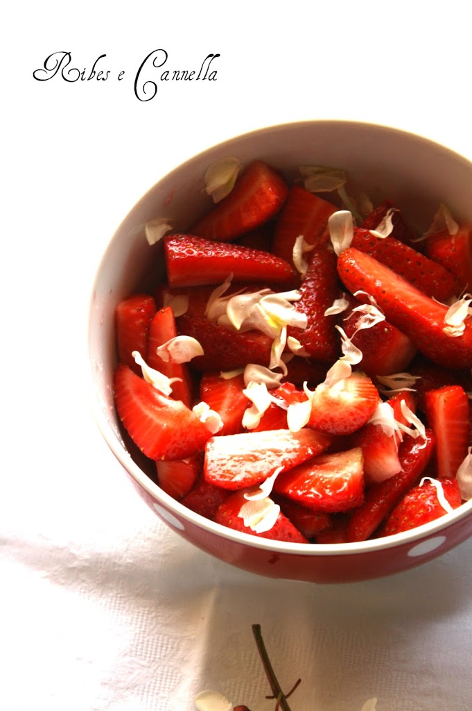 L’unica raccomandazione è sui fiori, io li passo velocemente sotto l’acqua, giusto un secondo in modo da non rovinarli.. e li ho semplicemente uniti alle fragole fatte macerare con zucchero e limone ^^