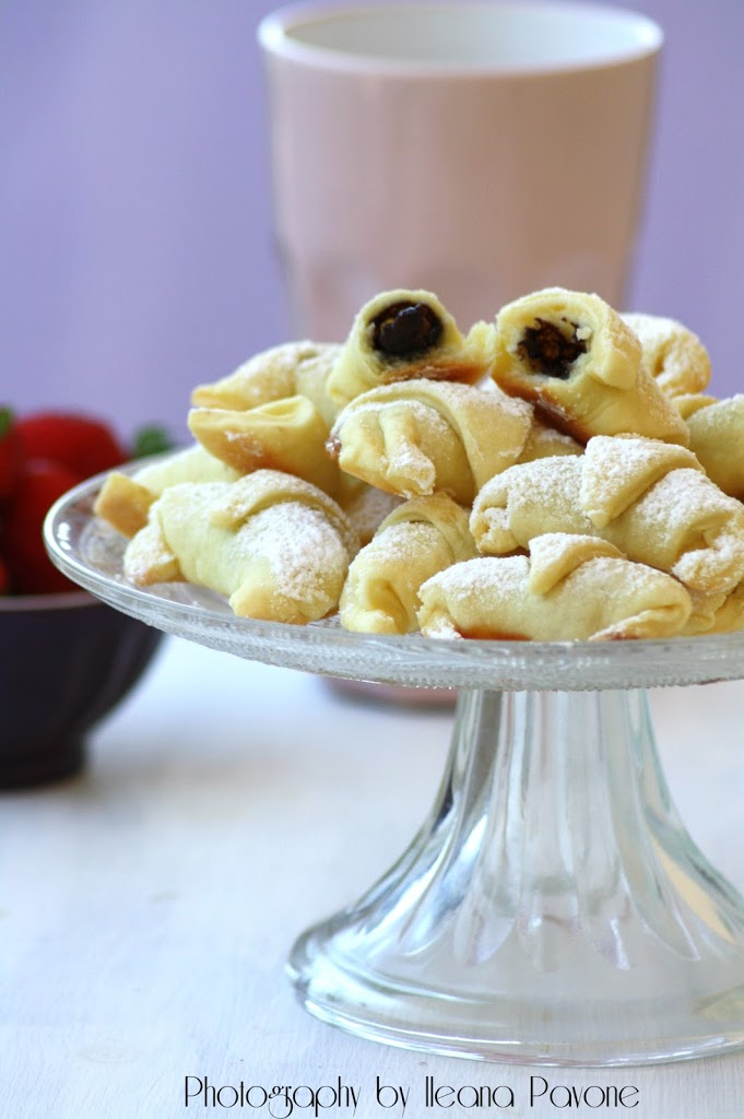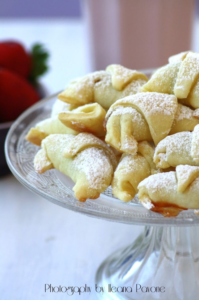 Sono dei cornettini morbidi, piccoli piccoli, alla ricotta, poco dolci, se non per il ripieno..e perfetti per una colazione sul balcone, basta prepararli la sera quando in teoria dovrebbe esserci meno caldo! 🙂