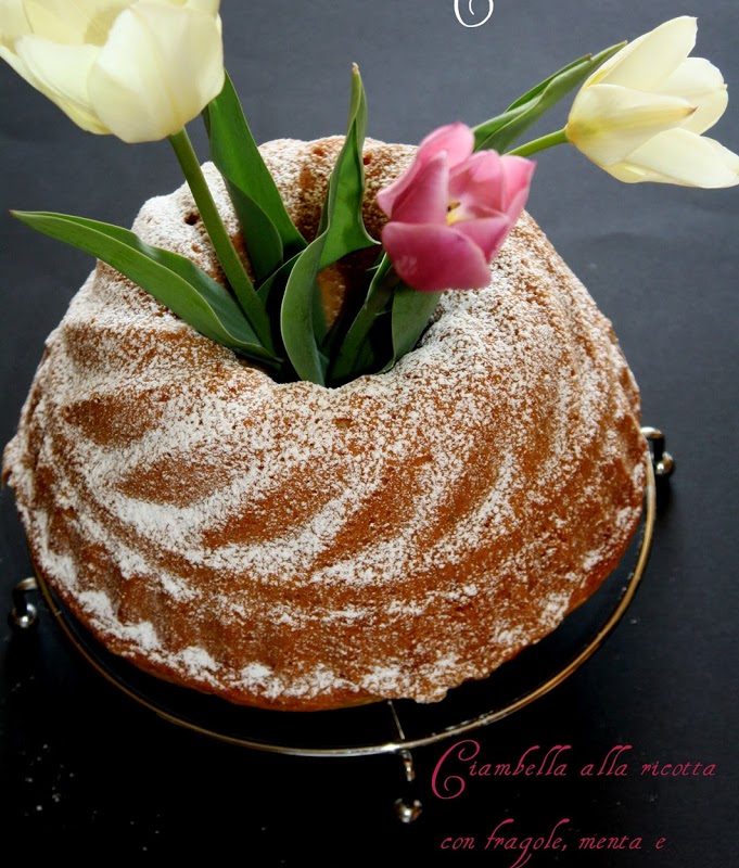 Ciambella alla ricotta con fragole, menta e salvia ananas
