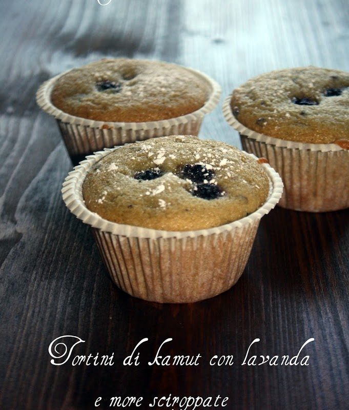 Tortine di kamut con lavanda e more sciroppate