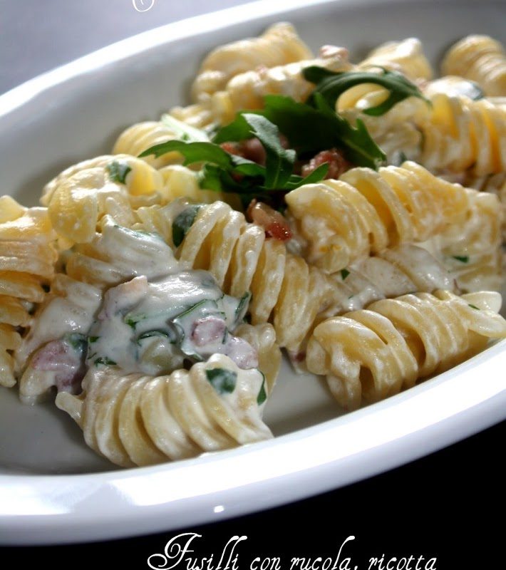 Fusilli con rucola, ricotta e pancetta al profumo di limone