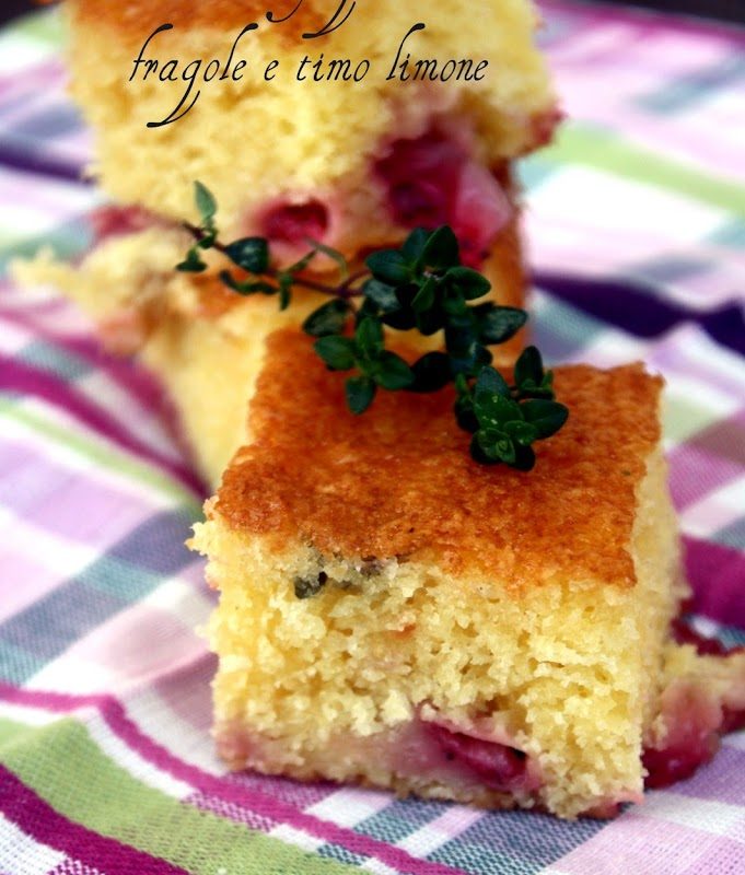 Torta allo yogurt con limone, fragole e timo limone