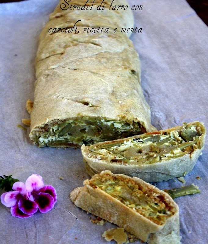 Strudel di farro con carciofi, ricotta e menta