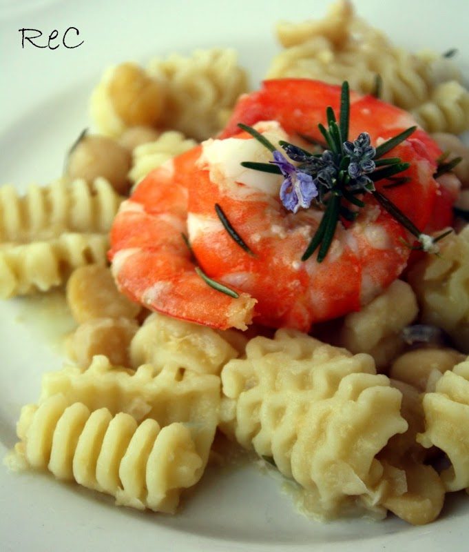 Pasta con ceci e gamberi al rosmarino
