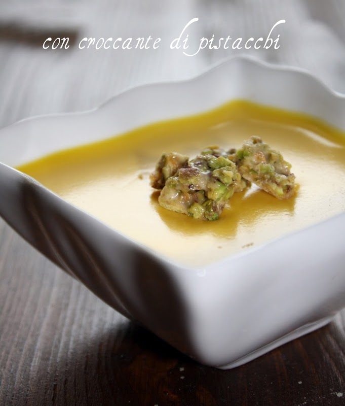 Panna cotta allo zafferano con croccante di pistacchi