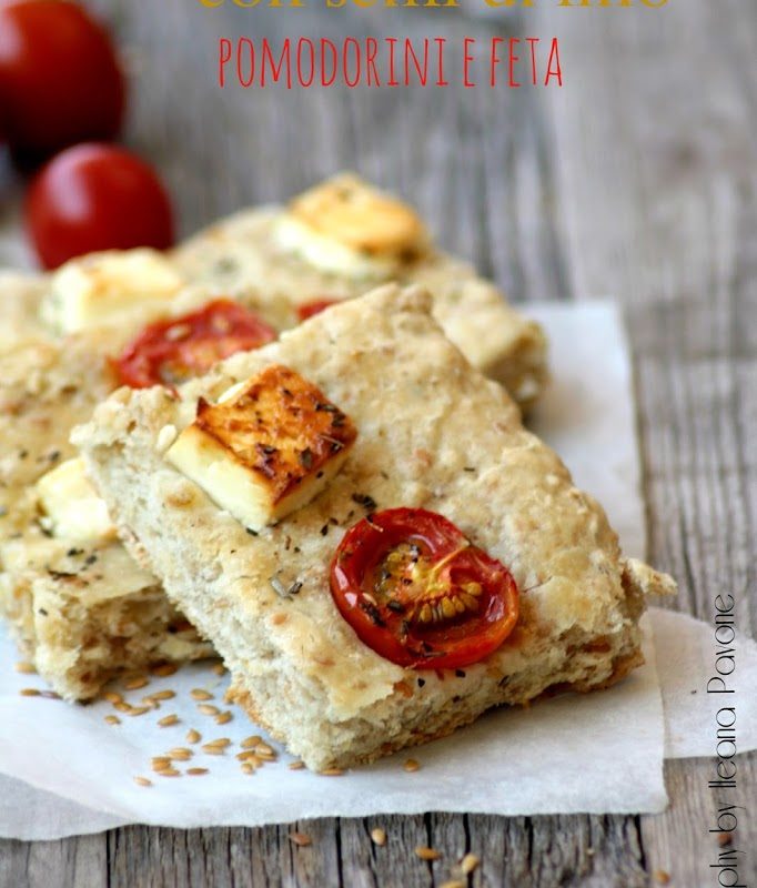 Focaccia all’avena e semi di lino con pomodorini, feta e origano