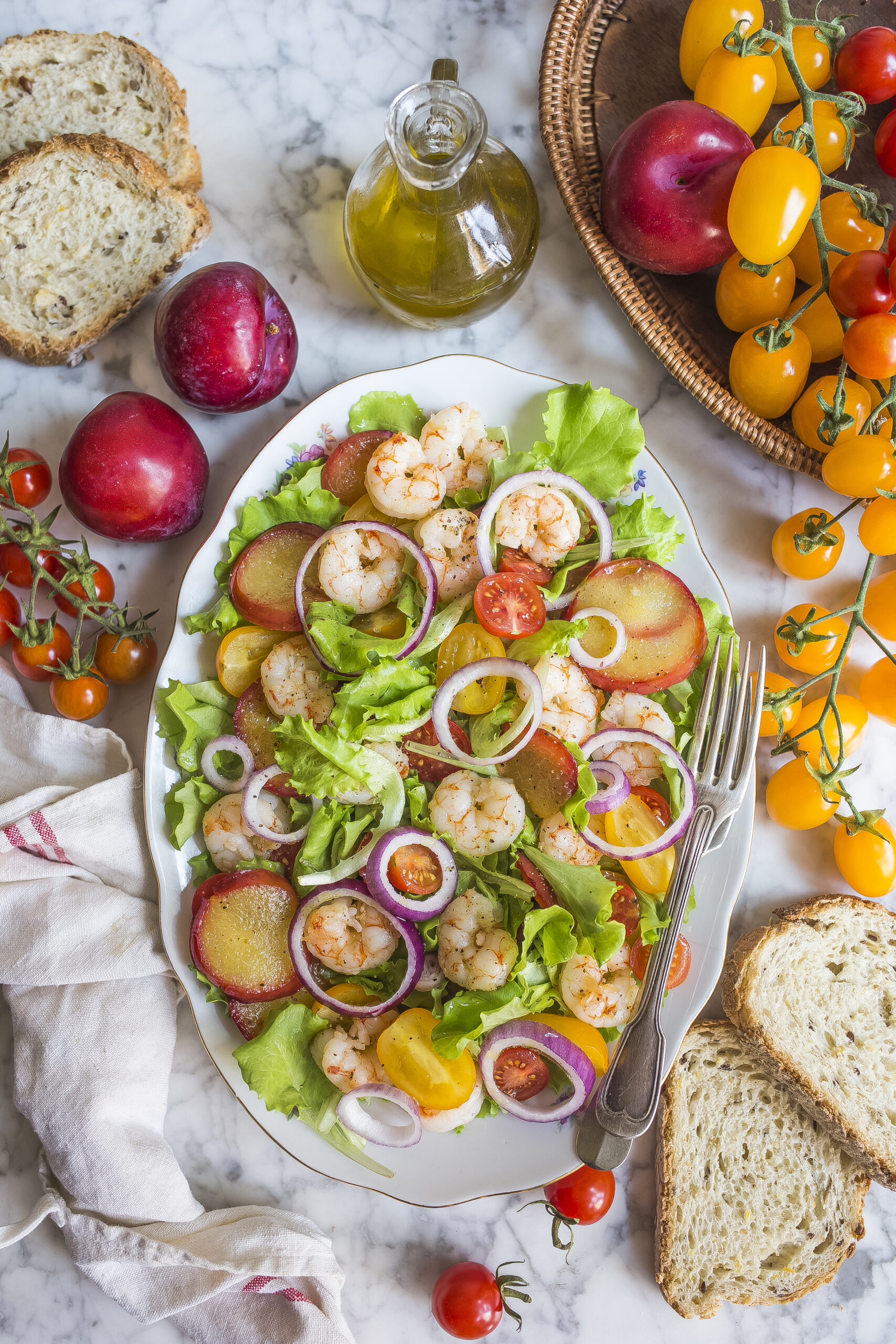 2 Ottobre 2025 By Ileana Pavone Lascia un commento Insalata di lattughino con gamberi, prugne grigliate, pomodorini e cipolla rossa2